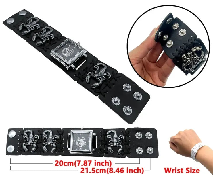 Are watches are made out of stainless steel and a adjustable leather strap